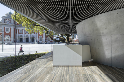 川の駅はちけんやから大川沿いに西へ徒歩約15分、中之島公園内に建つ美術館です。1982(昭和57)年11月に開館し、2024(令和6)年4月にリニューアルオープン。ガラス張りのエントランス棟が実にスタイリッシュで、中之島公園との一体感も演出します。